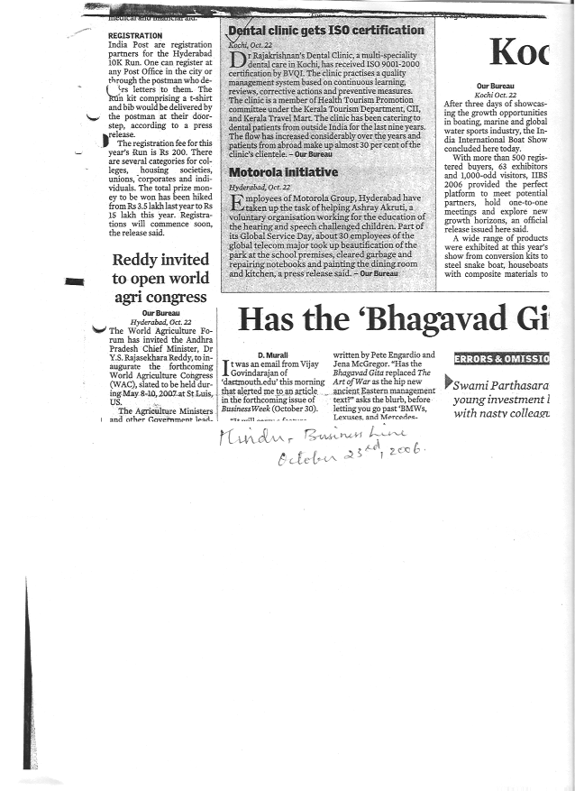 Dr. Rajkrishnan’s Dental clinic, multi- specialty hospital dental care in Kochi, has received ISO 9001:2000 certification by BVQI. The clinic practices quality management system based on continuous learning, reviews, corrective actions and prevention measures. The clinic is a member of Health Tourism promotion committee under the Kerala Tourism Department, CII and Kerala Travel Mart. The clinic has been catering to dental patients from outside India for the last nine years. The flow has increased considerably over the years.