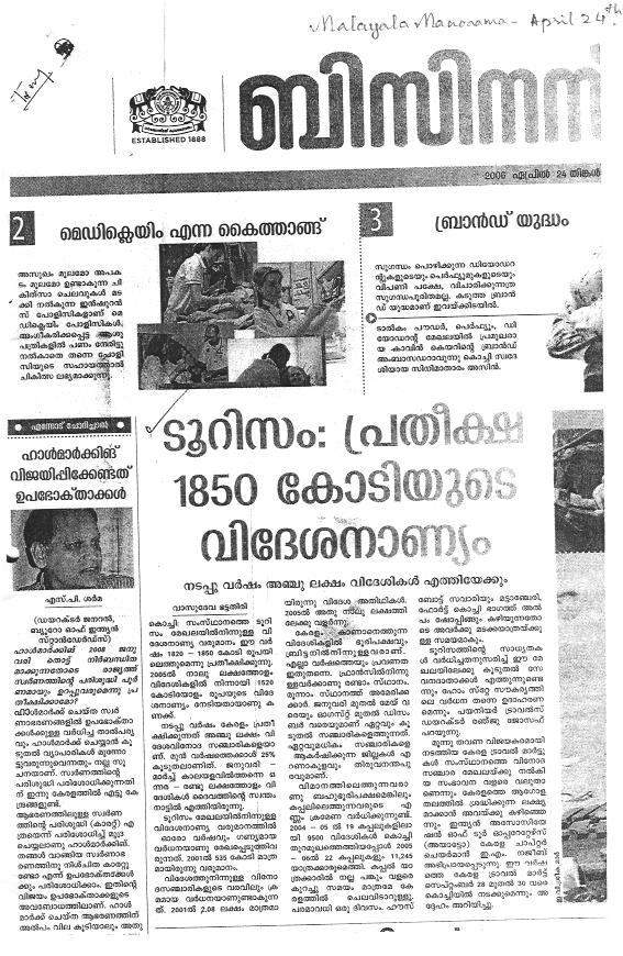 It is expected that foreign exchange earnings from tourism sector of the State will reach Rs 1820 - 1850 crores this year. In 2005, the State had earned Rs 1520 crores from 4 lakhs tourists. This year Kerala is expecting 5 lakhs tourists from abroad which is 25% more that last year. In the first quarter of this year itself 1.5 to 2 lakhs tourists have visited "God's own country"........