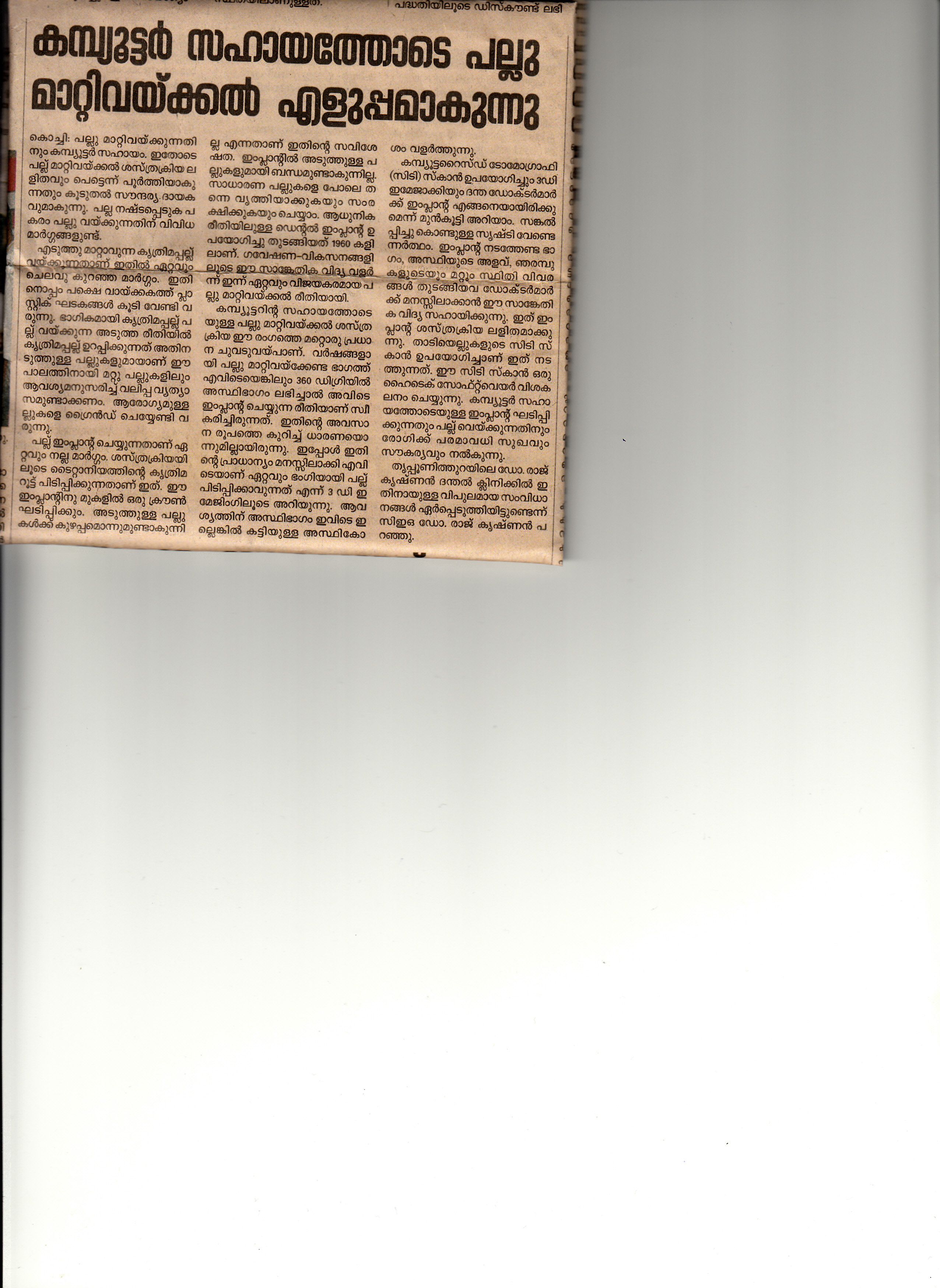 There are different methods to replace missing teeth. Dental implant surgery is the best among them which came to practice in 1960's. Research has been going on to improve this technique. Computer guided dental implant surgery is a major step forward in this field. Dr. Rajkrishnan's Dental Clinic in Tripunithura, Kochi has facilities for this type of surgery which is easier and more comfortable for the patient.