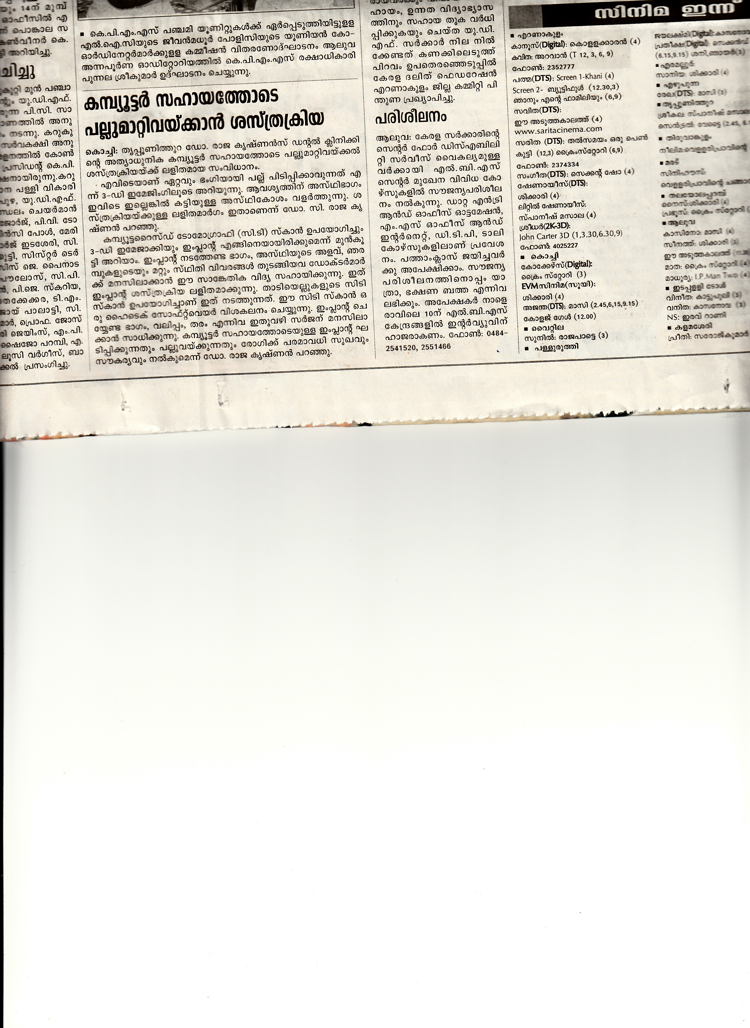 Dr. Rajkrishnan's Dental Clinic in Tripunithura has acquired the latest technology to make dental implant surgery easier and much more comfortable to the patient. Dr. Rajkrishnan C, CEO, said that in computer guided dental implant surgery, the dental surgeon can assess the most suitable position for placing the implant through 3D imaging. CT scan and 3D imaging along with a special software for analysis help the dentist to plan the full surgery in advance.